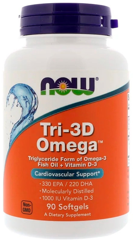 В основе NOW Tri-3D Omega— эйкозапентаеновая и докозагексаеновая жирные кислоты, а также витамин Д3. Благодаря этим компонентам биодобавка оказывает следующее воздействие на организм человека при условии регулярного употребления: