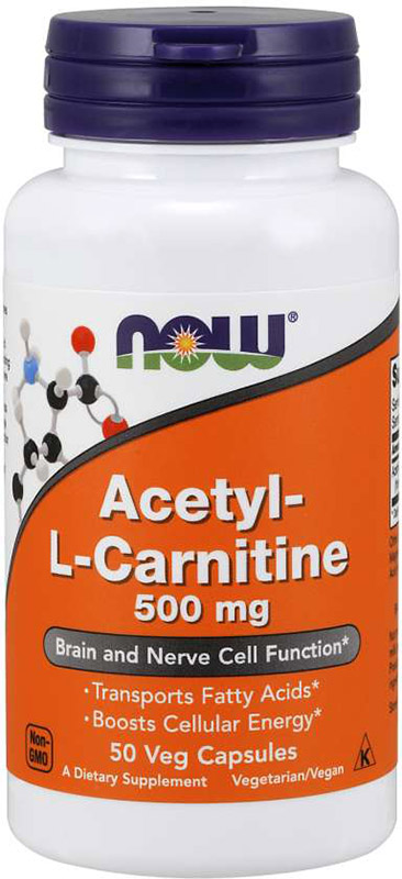 NOW® Acetyl-L-Carnitine 500mg – Ацетил-L-Карнитин – питательный элемент, от которого зависит выработка ряда биоактивных соединений с уникальными свойствами для поддержания здоровья человека: