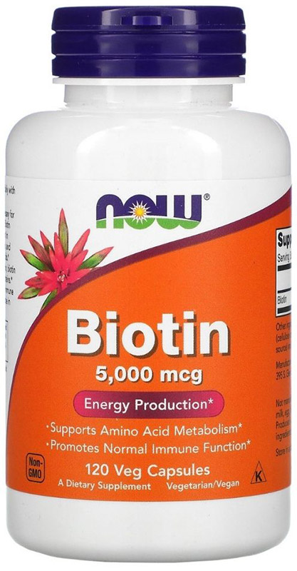 Biotin 5000 mcg NOW рекомендуется принимать мужчинам и женщинам, страдающим от андрогенной алопеции. Биотин в комбинации с другими препаратами, такими как Миноксидил или Проскар, полноценно воздействует на причины облысения по всем фронтам: стимуляция роста, остановка выпадения, восполнение недостатка витаминов и микроэлементов. Биотин не только является важным компонентом для роста волос, но и необходим для здорового состояния кожи, ногтей, внутренних органов, нормального протекания физиологических процессов, таких как рост и метаболизм клеток организма.
