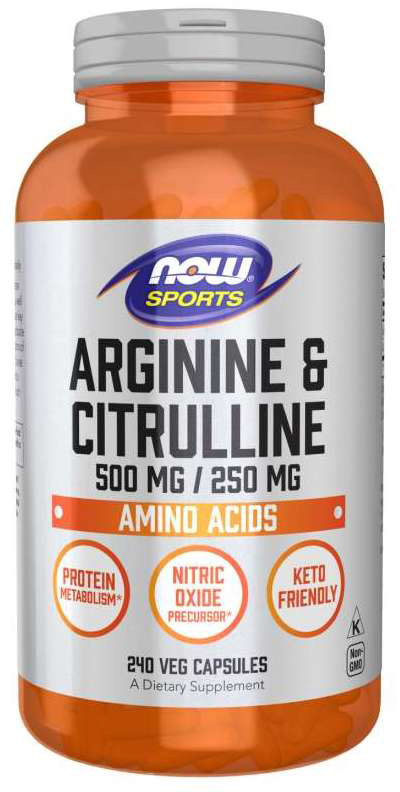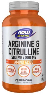 Now Arginine 500 mg Citrulline 250 mg 240 vcaps